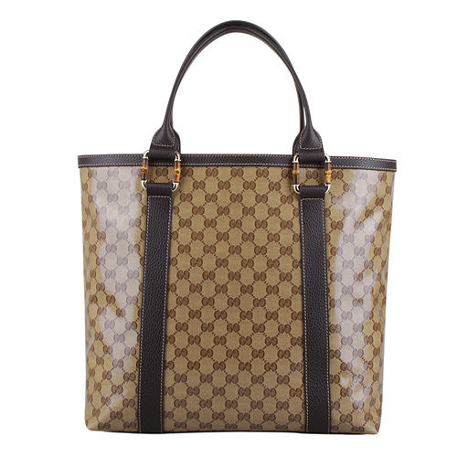 GUCCI 亮面設計牛皮竹節手提肩背包(咖啡)