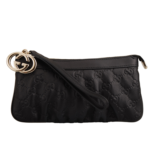 GUCCI 經典guccissima牛皮壓紋手拿包(黑)