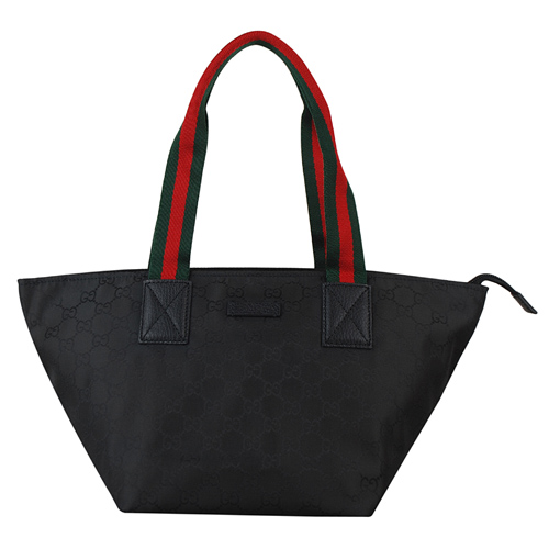 GUCCI 經典綠紅綠織帶系列手提水餃包(黑)
