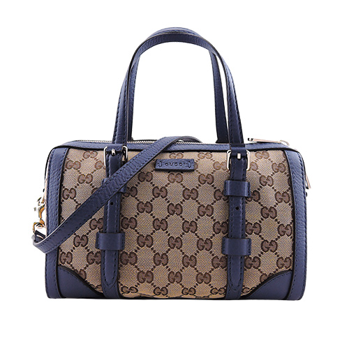 GUCCI 經典緹花雙槓手提/斜背波士頓包(卡其藍)