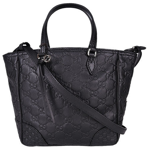 GUCCI 新版質感荔枝紋皮革壓紋手提兩用包.黑