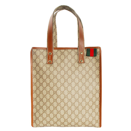 GUCCI 復古紅綠紅織帶PVC購物手提包(中/咖啡色)