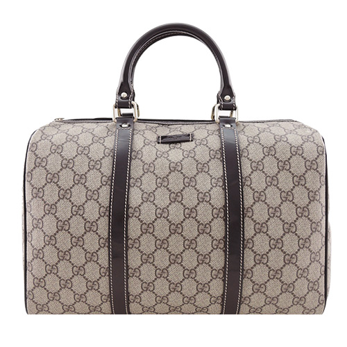 GUCCI 雙槓PLUS防水緹花波士頓包(咖啡)
