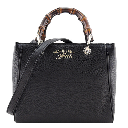 GUCCI 竹節手把牛皮手提/斜背兩用包(小/黑)