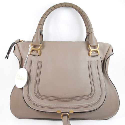 Chloe Marcie Bag 時尚質感皮革雙把肩背包.大象灰(大)