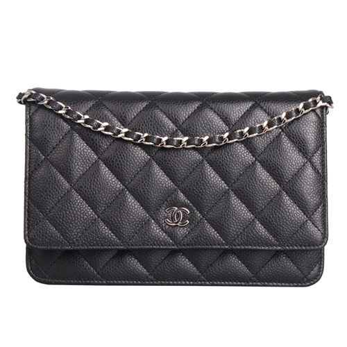 CHANEL 經典菱格紋CC LOGO魚子醬牛皮鏈帶包(黑)