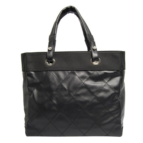 CHANEL 牛皮帆布菱格紋肩背包(黑)