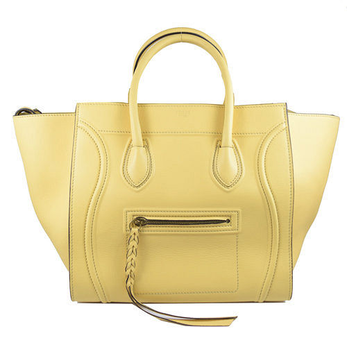 CELINE Small Square Luggage小牛皮微笑造型冏臉包.淡黃色